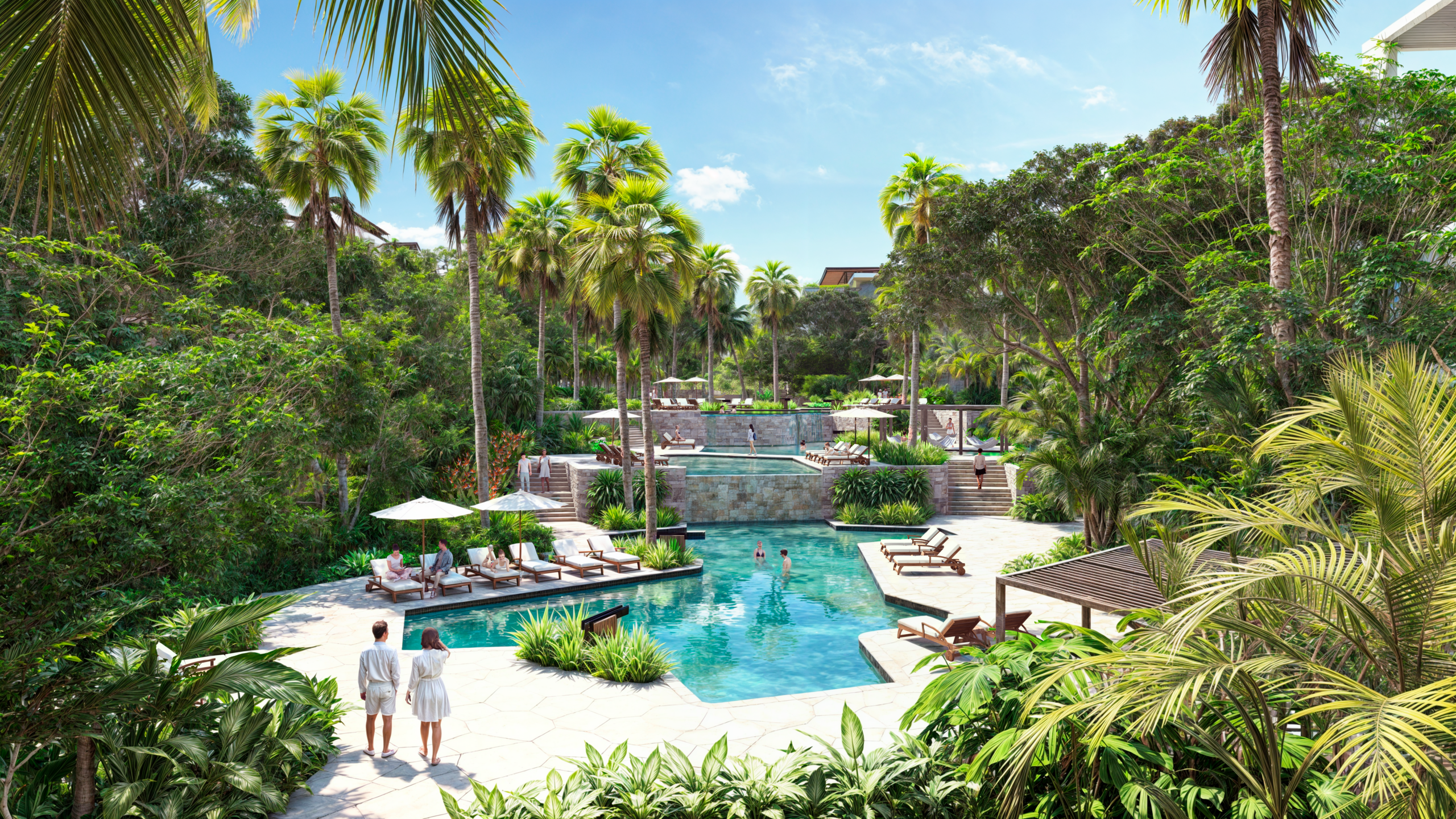 BAKABÁ ofrece un ecosistema de amenidades que promueve un estilo de vida activo y equilibrado. Entre sus espacios destacan carriles de nado semi-olímpicos, canchas de pádel, senderos para jogging y bicicletas, zonas de ejercicio al aire libre, áreas para mascotas y múltiples albercas con cascadas y áreas de descanso.