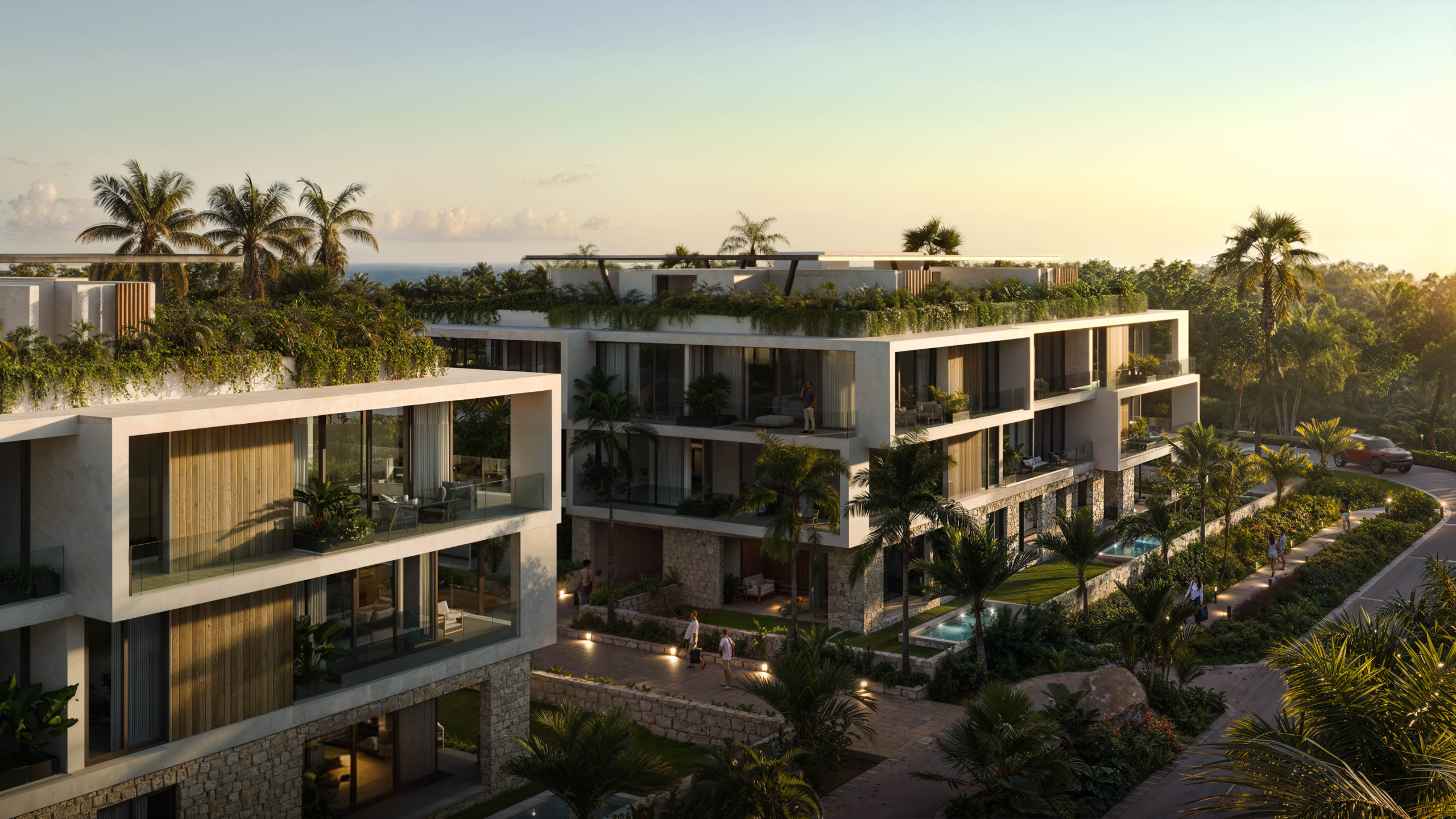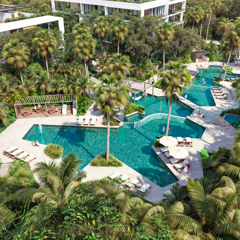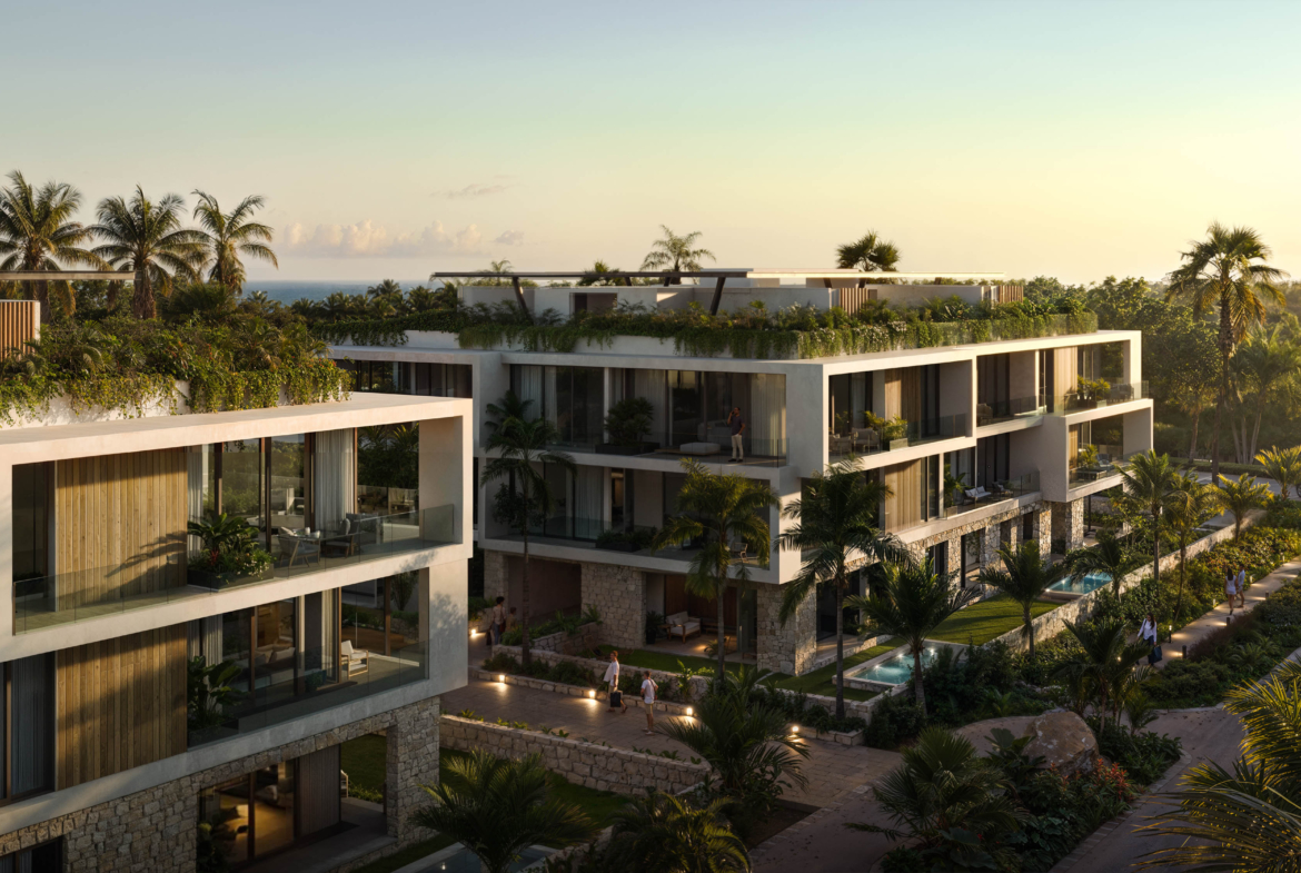 El desarrollo forma parte de un master plan de más de 69,700 m², donde más del 60% del terreno está destinado a áreas verdes y amenidades, lo que garantiza una experiencia residencial en armonía con la naturaleza y una baja saturación habitacional, característica cada vez más escasa en Playacar.