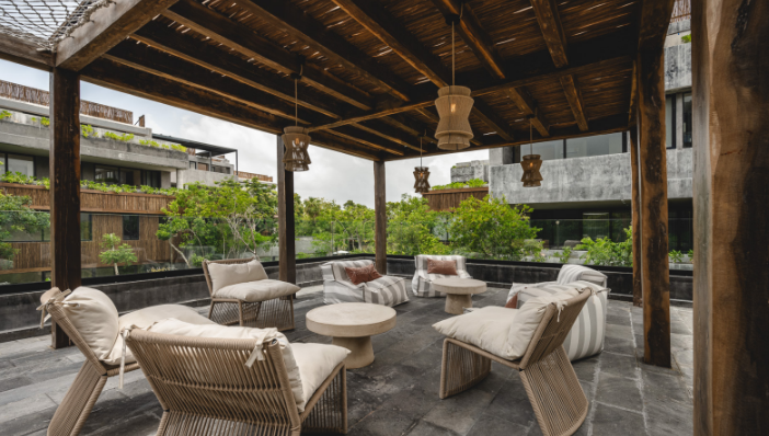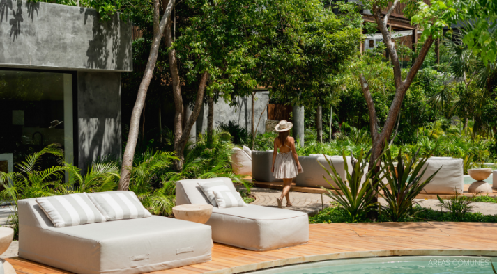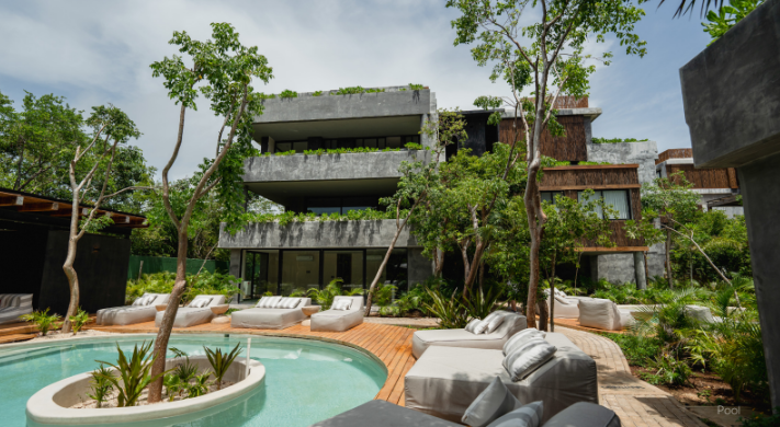 El concepto arquitectónico prioriza la integración de la vegetación en todos los niveles del edificio mediante terrazas escalonadas, materiales regionales como chukum y maderas locales, y una distribución que favorece la ventilación cruzada y la iluminación natural. Con 89 residencias distribuidas en cuatro niveles, el proyecto mantiene una escala humana y un ambiente privado, alineado con la demanda actual de desarrollos en preventa y venta inmediata que combinan diseño y naturaleza.