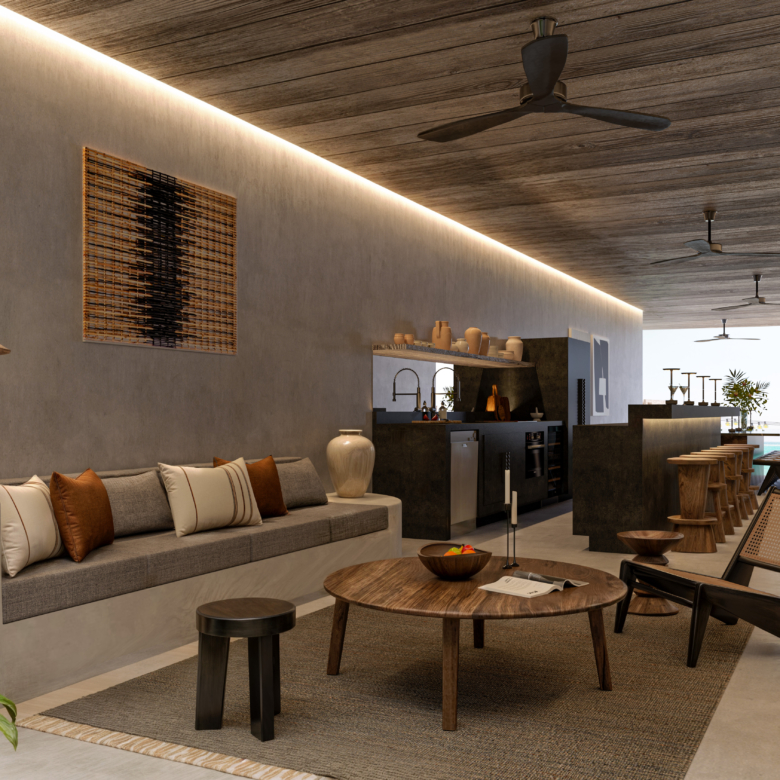 El proyecto fue diseñado por el arquitecto y diseñador Sebastien Robert, con un enfoque claro en la integración con el entorno natural y la creación de espacios funcionales y estéticos. La calidad de los materiales, el diseño contemporáneo y la entrega de unidades completamente amuebladas reflejan una propuesta alineada con el mercado premium de Tulum. La visión del desarrollador prioriza el respeto por la naturaleza, la baja densidad y la creación de experiencias residenciales auténticas, elementos clave para garantizar la valorización del proyecto.