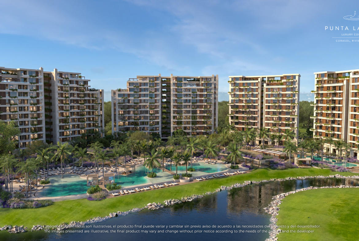Punta Laguna destaca por su ubicación privilegiada dentro de Corasol, una comunidad planeada frente al mar que integra naturaleza, campo de golf y acceso a clubes de playa. A diferencia de otros desarrollos, este proyecto ofrece un entorno tipo resort con más de 12 acres de amenidades exclusivas, transporte privado a la playa y acceso a servicios premium. Sus departamentos de 2 y 3 recámaras están diseñados tanto para uso residencial como para renta vacacional o de largo plazo, lo que amplía su perfil de inversión.