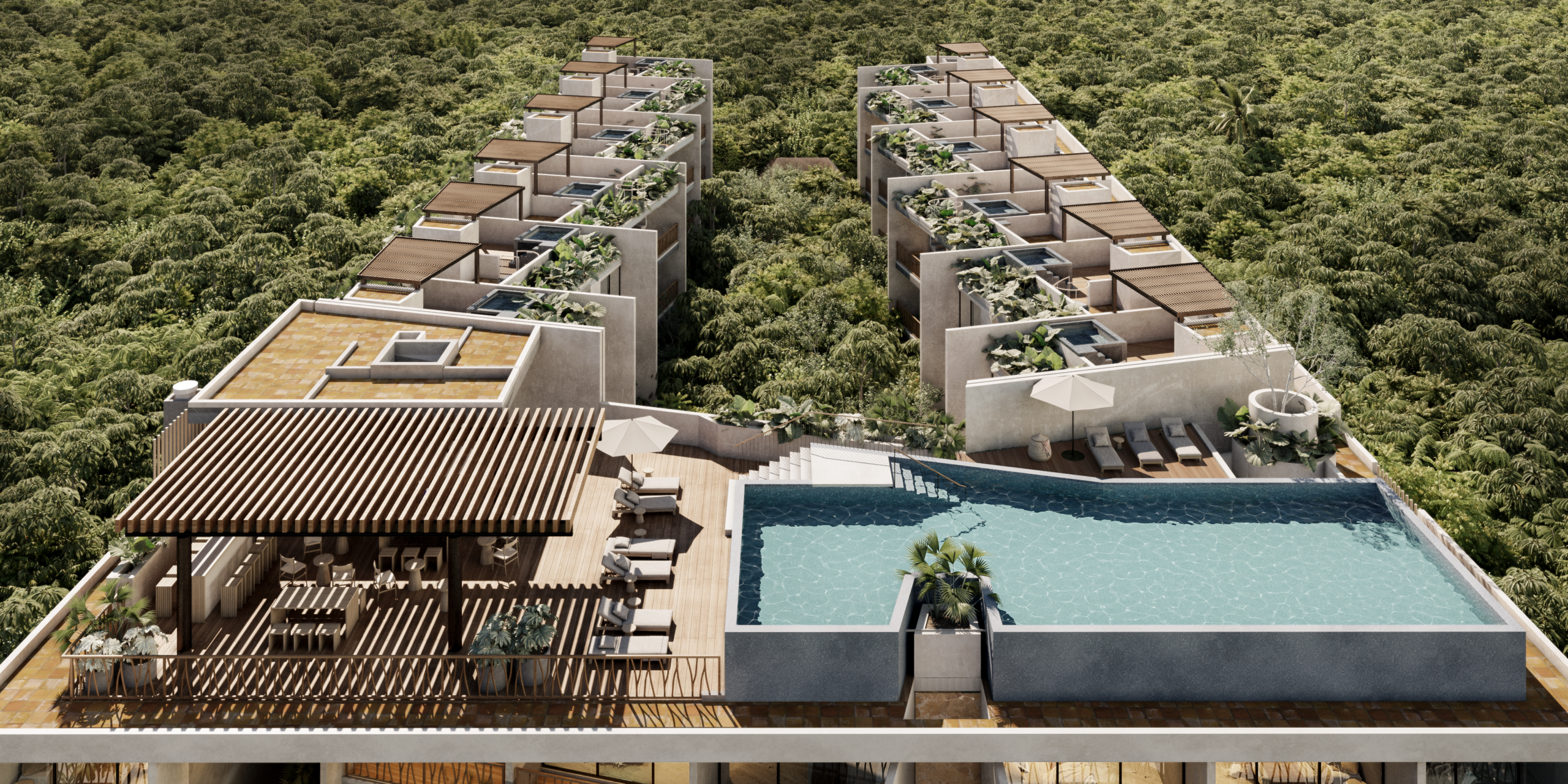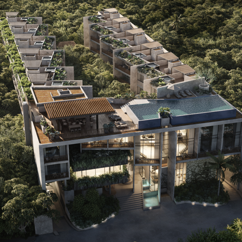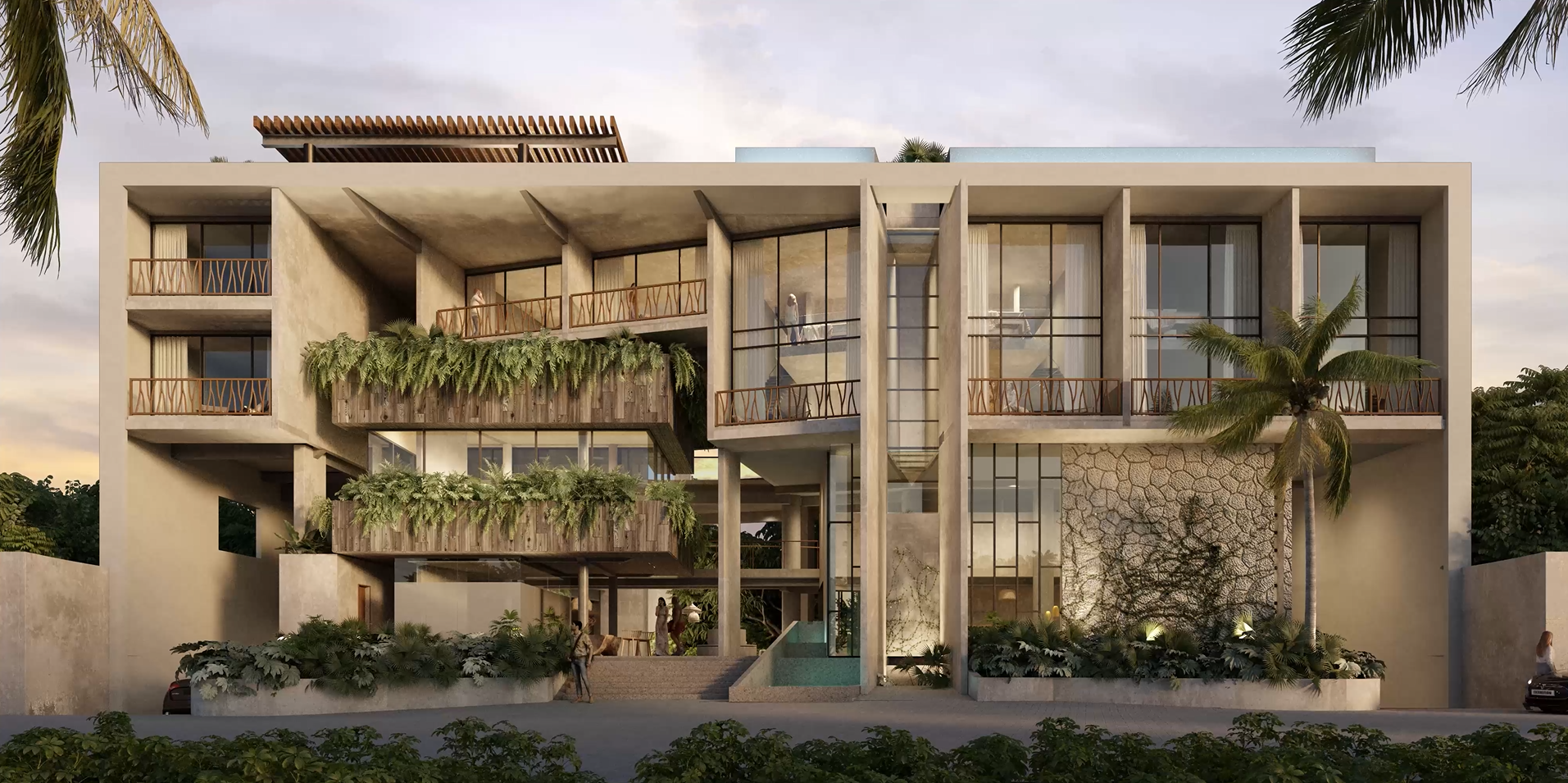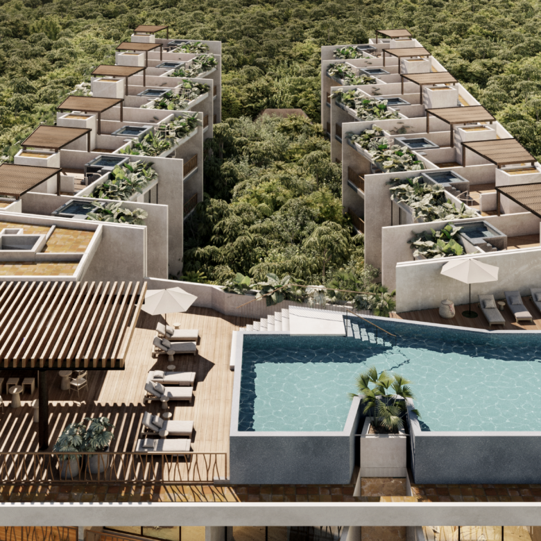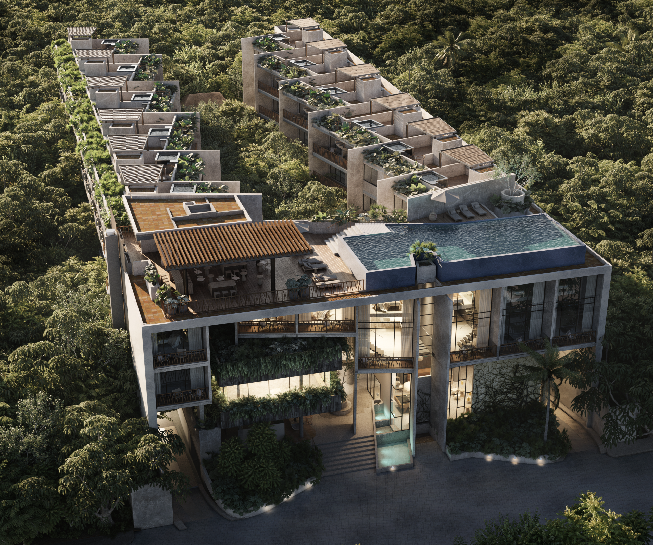 El proyecto está compuesto por 60 unidades equipadas que incluyen estudios, departamentos de 1 y 2 recámaras y penthouses, diseñados para adaptarse tanto al uso residencial como a esquemas de renta vacacional. Su concepto arquitectónico integra amenidades en rooftop, áreas verdes y espacios de bienestar que responden al estilo de vida contemporáneo que define a los bienes raíces en la Riviera Maya.