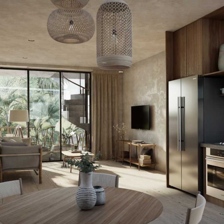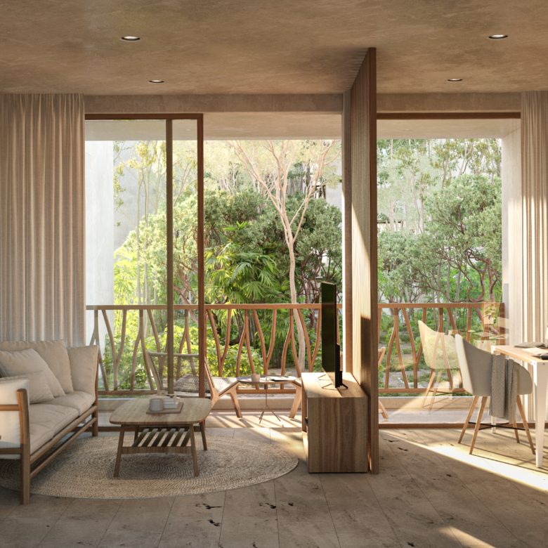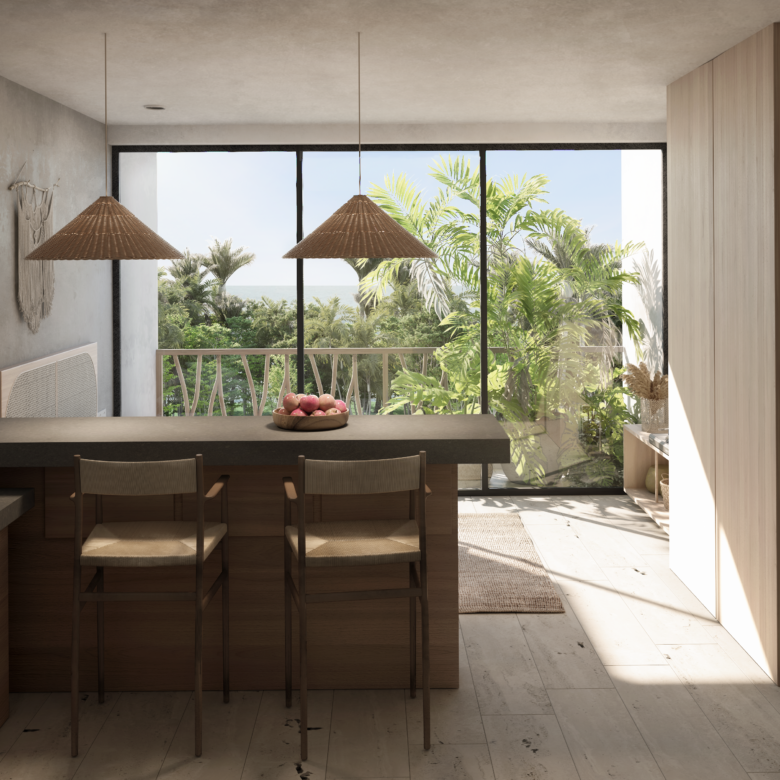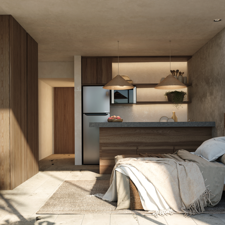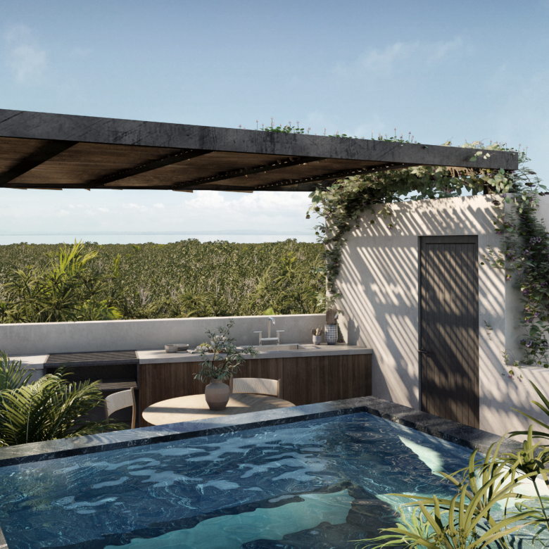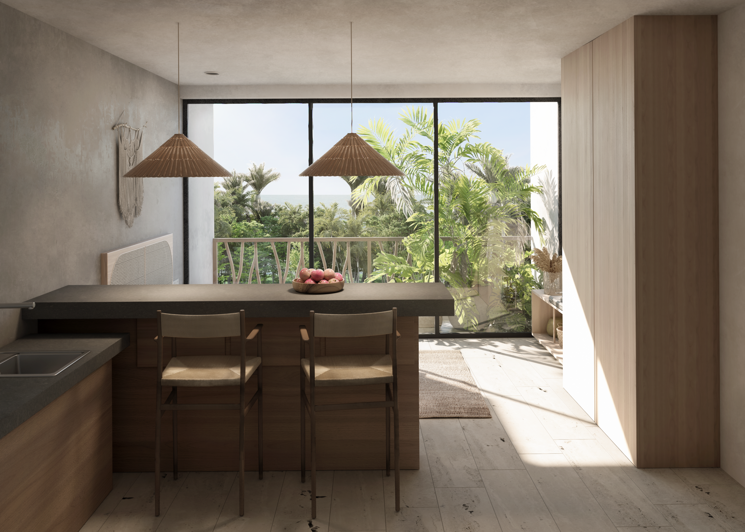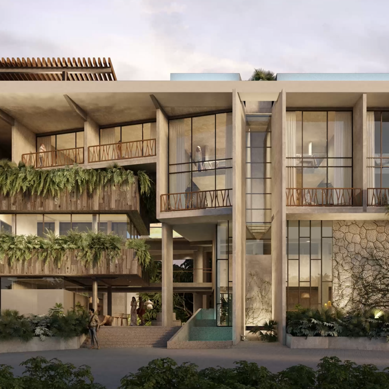 El proyecto está compuesto por 60 unidades equipadas que incluyen estudios, departamentos de 1 y 2 recámaras y penthouses, diseñados para adaptarse tanto al uso residencial como a esquemas de renta vacacional. Su concepto arquitectónico integra amenidades en rooftop, áreas verdes y espacios de bienestar que responden al estilo de vida contemporáneo que define a los bienes raíces en la Riviera Maya.