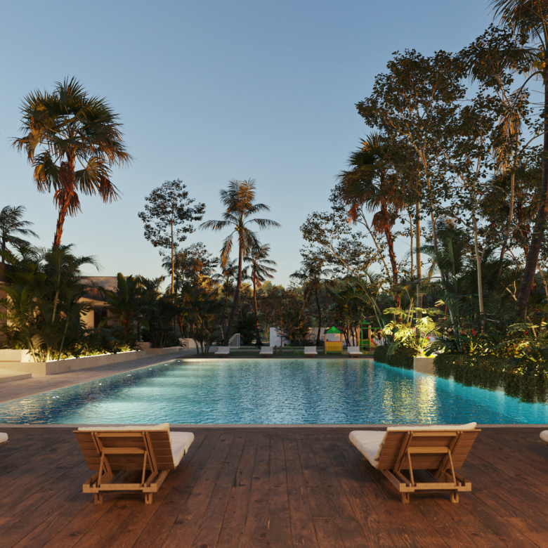 Las amenidades incluyen alberca para adultos, alberca semiolímpica, piscina para niños, gimnasio equipado, canchas de pádel, cancha de usos múltiples, circuito para correr, pet park, skate park, ludoteca, salón de eventos, bar, cafetería, área social, área comercial y lobby, todo dentro de un entorno con acceso controlado y seguridad 24/7. Este enfoque residencial responde a la demanda actual de terrenos en venta en Playa del Carmen dentro de desarrollos privados bien planeados.