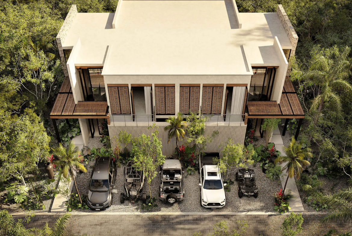 V by G Real Estate Tulum es un exclusivo desarrollo de 4 casas de dos niveles ubicado en la privilegiada Región 15, a solo 10 minutos de la playa y del centro de Tulum.